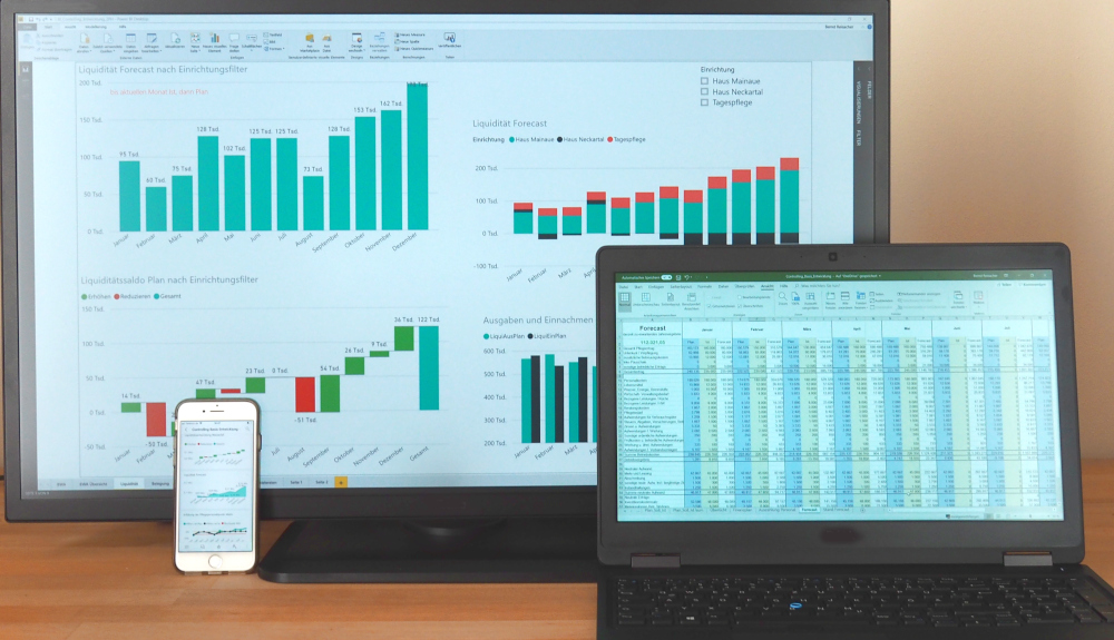 Die detaillierte Planung und Auswertung beruht immer auf einzelnen Einrichtungen. Die wichtigsten Daten aus den verschiedenen Modulen lassen sich aber auch nebeneinanderstellen und gemeinsam auswerten.